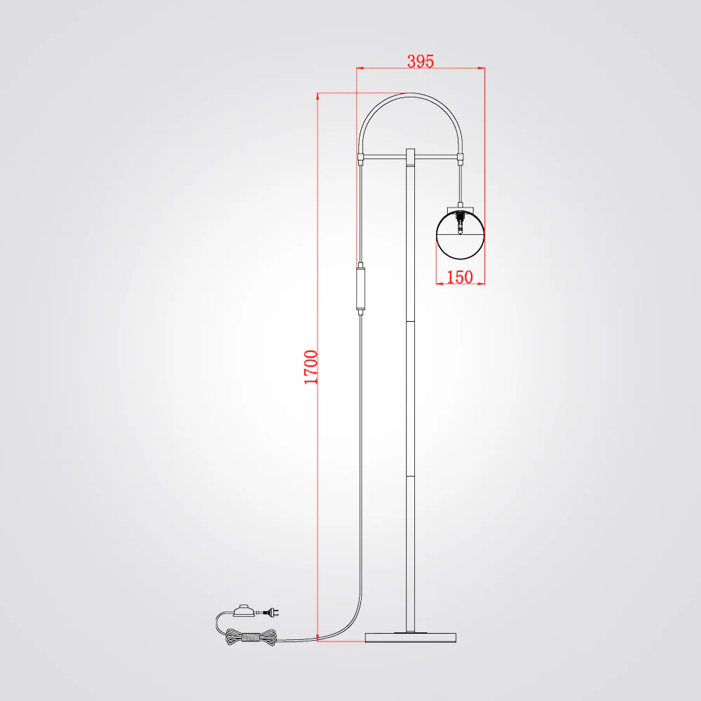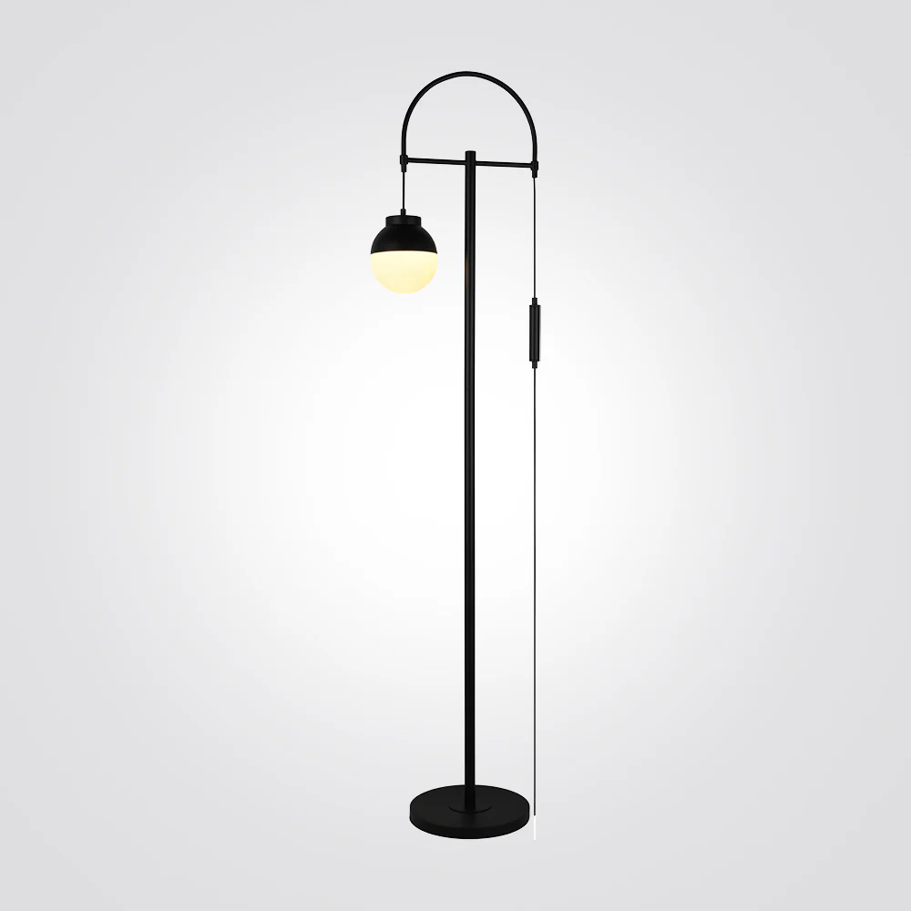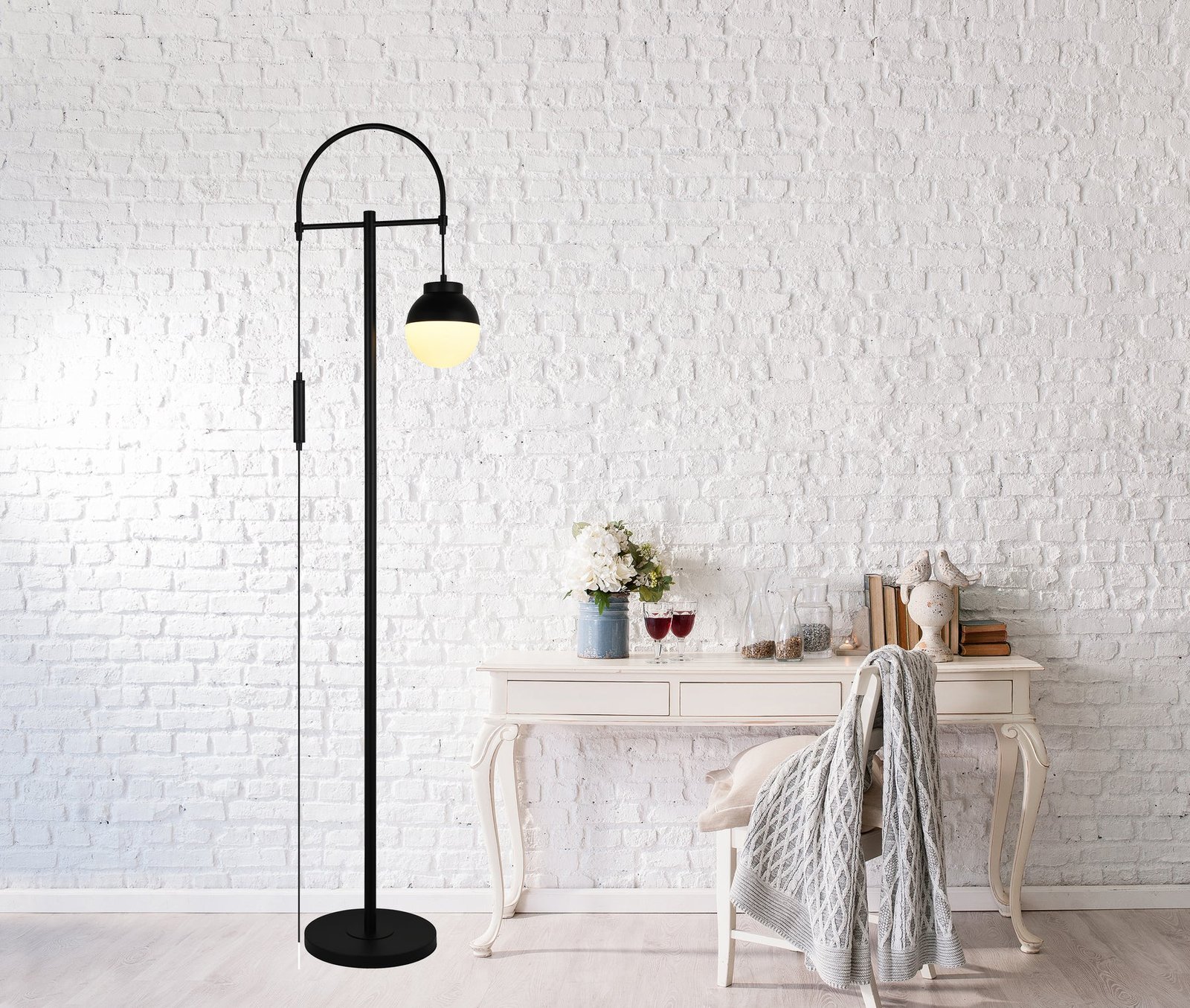 מנורת עמידה מתכת בצבע שחור כדור חלבי, מתאים לסוג נורה G9.